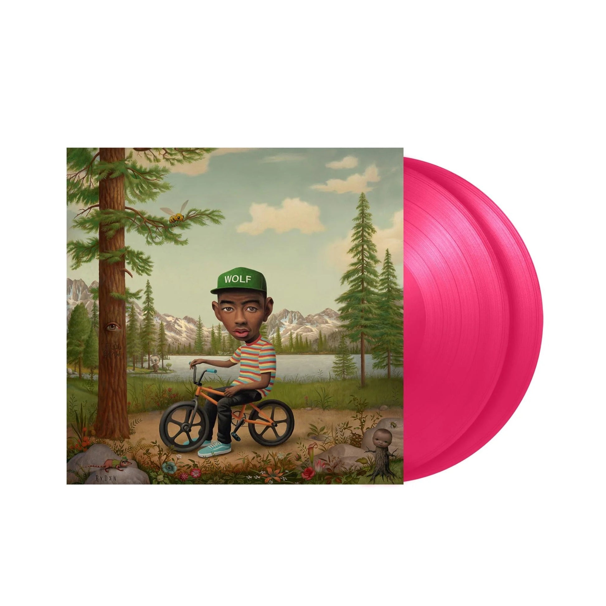 Long out of print on vinyl, Tyler, The Creator’s classic album "Wolf" is now available in an official repress. This edition features the album pressed on two pink-colored LPs housed in a gatefold jacket with printed inner sleeves and a 12”x 12” insert. Additionally, the package includes an oversized sticker featuring Tyler’s face.